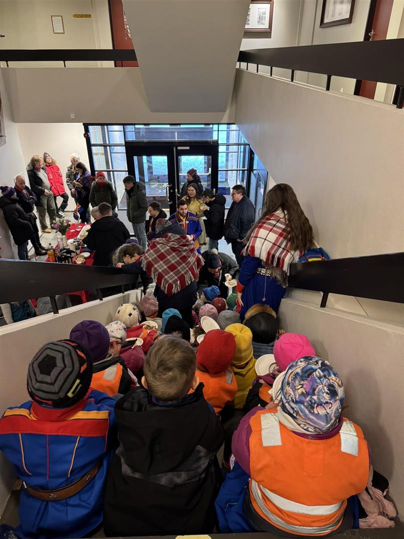 På fredag hadde vi koselig besøk av Guolban mánáidgárdi under flaggheisingen i forbindelse med markering av samenens nasjonaldag.