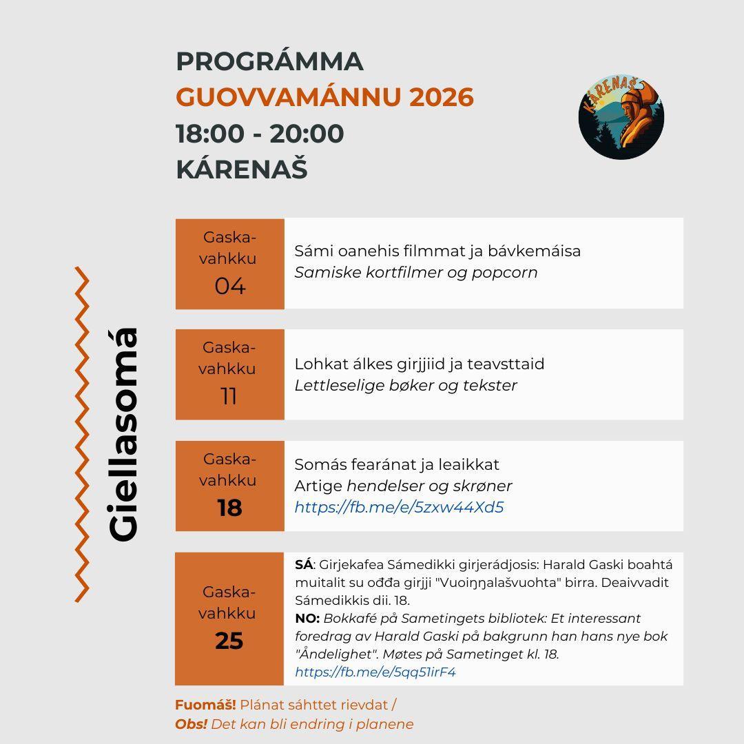 Giellasomá! - deaivvadeamit gaskavahkuid ti. 18-20. Muhtun rievdadusat - geahča prográmma vulobealde.